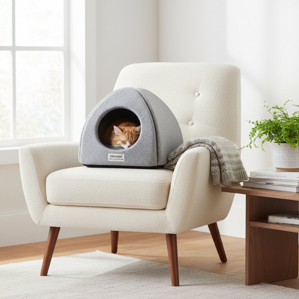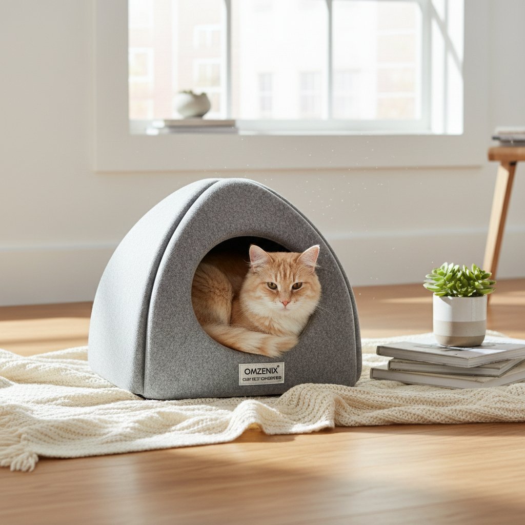 Be the first to review “Omzenix Cozy Felt Cat Cave Bed – Modern Covered Pet House for Cats & Kittens” Cancel reply
