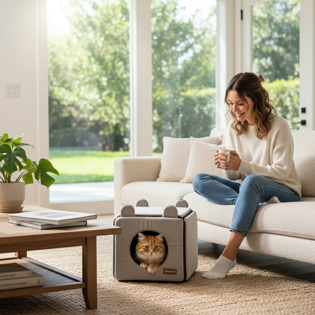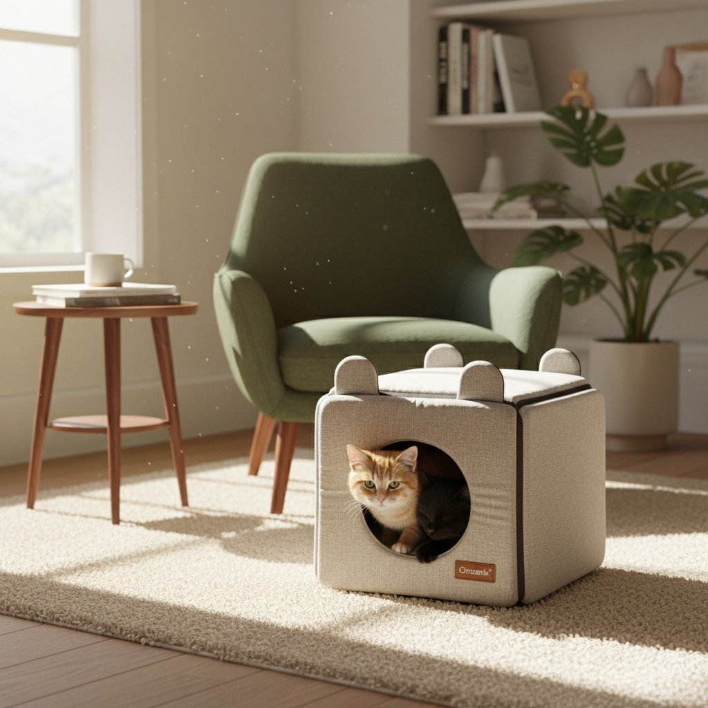 Give your feline friend the ultimate private retreat with the Omzenix Cozy Foldable Cat Tent. This stylish indoor pet house provides a warm, secure, and comfortable space for your cat to nap, hide, and play. Its modern design blends seamlessly with your home decor while offering a perfect sanctuary for your beloved pet.